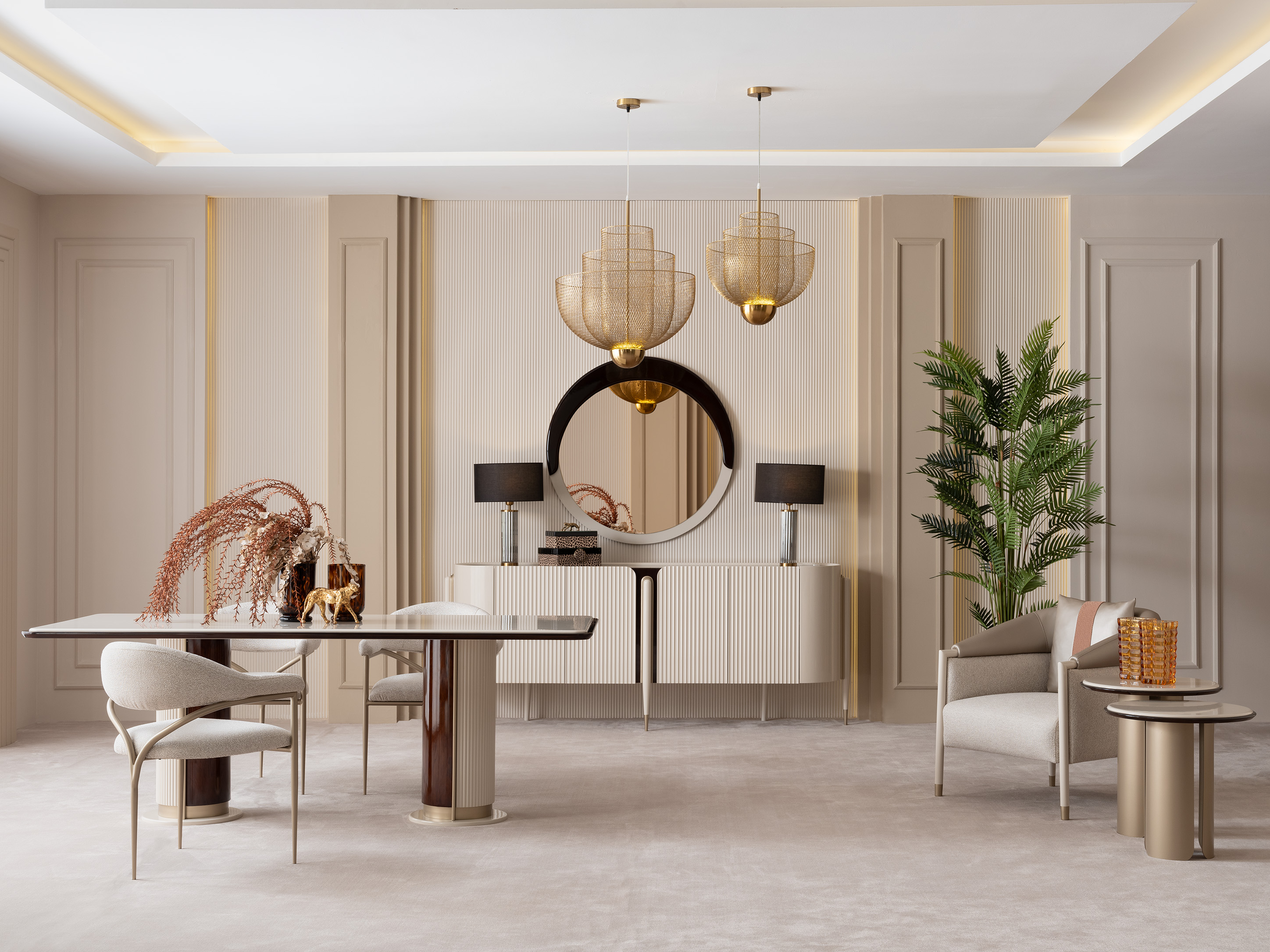Braga Yemek Odası Takımı, modern tasarımı benzersiz doku geçişleriyle buluşturarak zarif bir atmosfer sunar. Sofistike detayları ve güçlü form diliyle yaşam alanlarına ayrıcalık katar.